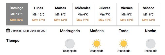 Por la mañana y por la noche la temperatura mínima será baja, pero no inferior a los 10 grados, según anuncia el Servicio Meteorológico Nacional.
