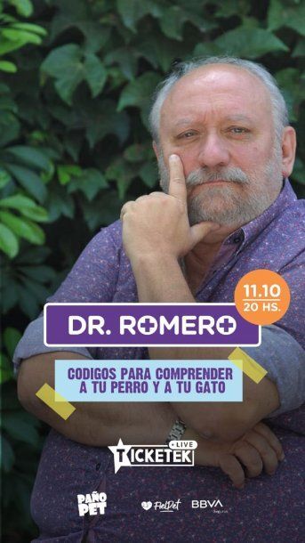 Además, Romero responderá las consultas más populares de los espectadores. "Tal vez no salgas maullando ni ladrando, pero indudablemente entenderás mucho mejor a tu compañero de vida", dice la invitación. Para poder participar, se debe sacar la entrada en www.ticketek.com.ar, a un valor de $400.