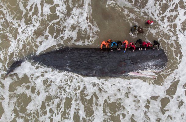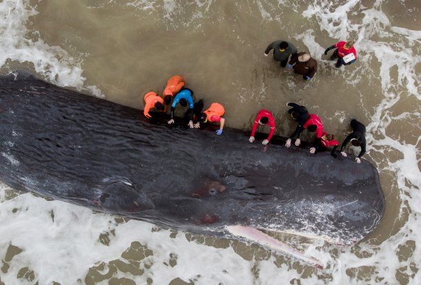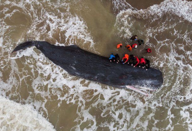 Los expertos aseguraron que el animal, de 15 metros de largo, había llegado con vida a la costa pero murió tras encallar en la arena.