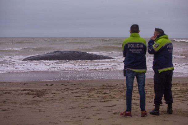 La presencia del cetáceo sobre la costa congregó a casi un centenar de vecinos de esa localidad costera, mientras se puso en marcha por parte de bomberos, policías y expertos en fauna un amplio despliegue para rescatar el cuerpo.