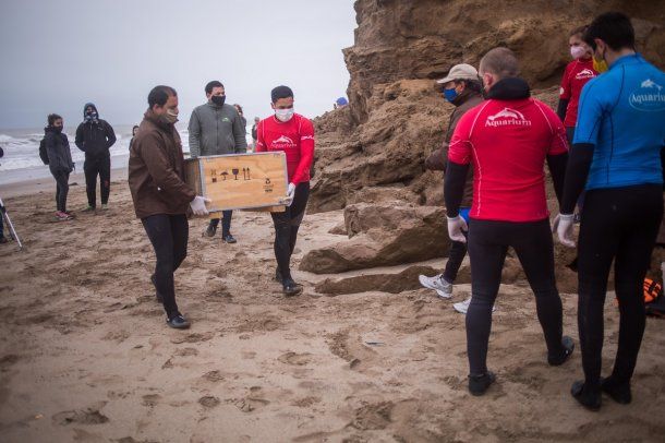 Y, acotó: "Dos veces me metí al mar para corroborarlo. El animal está en la misma posición, con la boca entreabierta y sin signos vitales" aunque estimaba que al parecer había "llegado vivo" a la costa "por el tipo de marcas que hay en el cuerpo, que son heridas por el fondo rocoso".