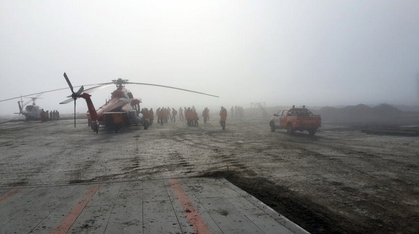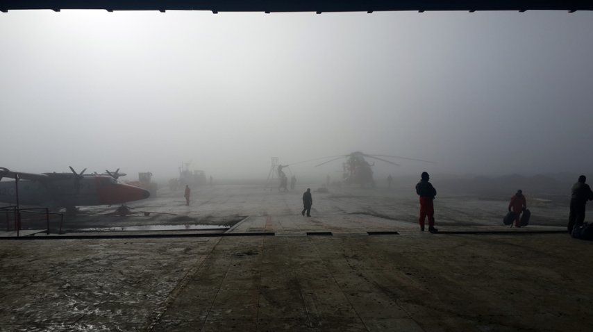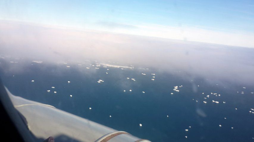 La idea inicial era recorrer la Base Esperanza y la Base Petrel, pero las condiciones meteorológicas en Marambio no auguran un buen clima para aterrizar en el regreso del periplo, por lo que se suspende el plan. No obstante, el ministro de Defensa hace una recorrida aérea junto a un grupo de militares y civiles a bordo del MI-17, que permite trasladar a 26 pasajeros. Desde el aire se avista toda la Base, la meseta y parte del mar. La superficie, por ser verano, no está congelada, aunque se registran bloques de hielo tanto en tierra como en agua.