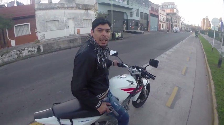 "Amigou, amigou" es una frase que costará sacar de la cabeza de los argentinos. El video que muestra cómo un turista canadiense es interceptado por un motochorro que lo amenaza con un arma se viralizó de una manera desorbitante. El mismo día, tuvo unas 17 mil visitas. A los pocos días fue detenido pero luego salió en libertad. A partir de entonces, Gastón Aguirre, se convirtió en el motochorro famoso que circuló por cuanto medio de comunicación pudo.