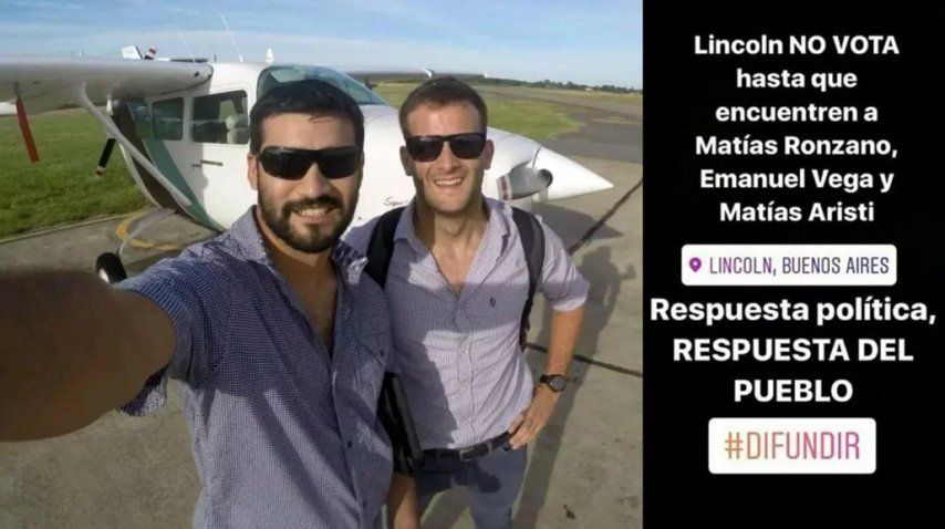 Los habitantes del partido bonaerense de Lincoln llaman a no votar en las PASO en reclamo de la intensificación de la búsqueda de la avioneta que desapareció luego de despegar del aeropuerto de San Fernando.
