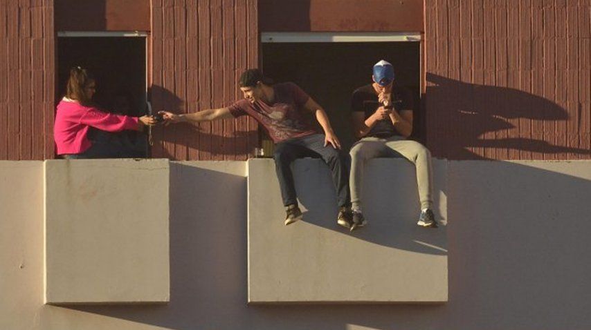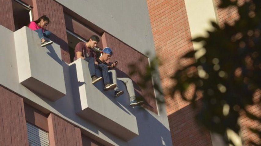 Sentados en las ventanas de un sexto piso, tres jóvenes desafiaron a la muerte con indiferencia. Fueron fotografiados en Bahía Blanca mientras se mostraban al borde del vacío. No es la primera vez que lo hacen