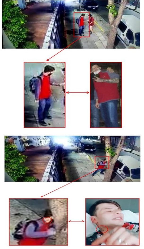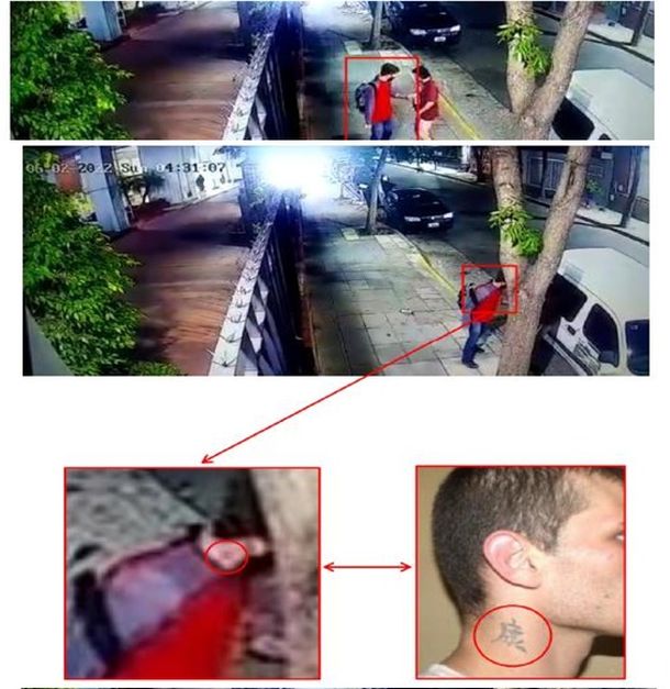 A raíz de minuciosos análisis de imágenes del video registrado en el momento del ataque ocurrido en el barrio porteño de Balvanera, los efectivos determinaron que el agresor poseía singulares tatuajes en su antebrazo, mano derecha y en el cuello.
