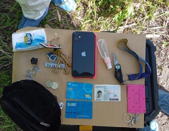 Se encontró un teléfono celular, su DNI, dos tarjetas sube y una botella de alcohol en gel. Se debió a un entrecruzamiento de información con una antena telefónica por parte de la División Búsqueda de Personas de la Policía de la Ciudad, que se encargó de hacer el rastrillaje.