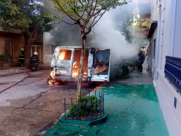Bomberos de la Ciudad acudieron al lugar luego del llamado a los servicios de emergencia que daban cuenta de un incendio generalizado en una Renault Trafic estacionada.