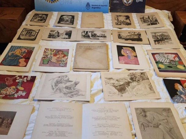 Por el contrario, sí se encontraron más de 25 estampas de colecciones alemanas y francesas de la década de 1940. Además se halló documentación relevante, dos teléfonos celulares, un revólver y una escopeta.