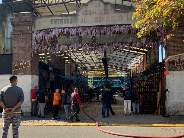 Un impresionante incendio se produjo este mediodía en un puesto de comidas del “Patio de los Lecheros”, ubicado en el barrio porteño de Caballito. Dos personas tuvieron que ser trasladadas por inhalación de humo.