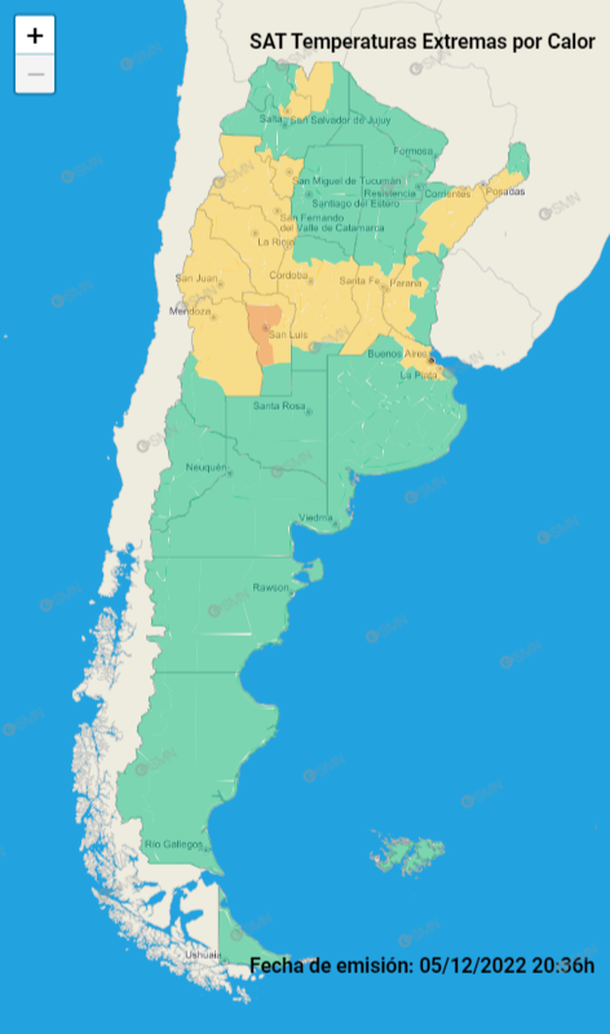 Tucumán, Catamarca, La Rioja, San Juan, gran parte de Mendoza, de Córdoba y de San Luis están bajo advertencia meteorológica por temperaturas que pueden ser peligrosas, sobre todo para los grupos de riesgo, como niños y niñas, personas mayores de 65 años, con enfermedades crónicas.