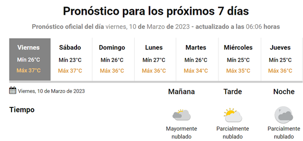Para este viernes 10 de marzo de 2023 el Servicio Meteorológico Nacional (SMN) anuncia una temperatura máxima de 37 grados, pero ese número podría ser mayor.