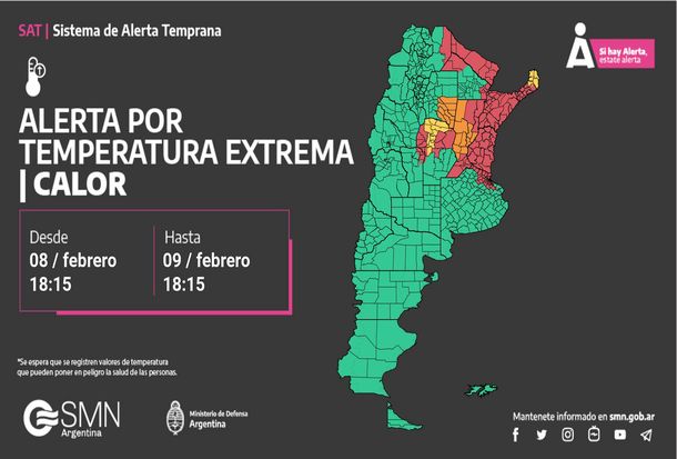 Según informó el Servicio Meteorológico Nacional (SMN), el nivel rojo implica temperaturas "muy peligrosas" que "pueden afectar a todas las personas, incluso a las saludables".