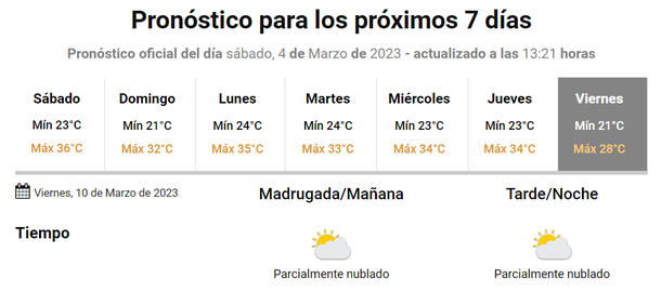 Para los próximos días se esperan marcas térmicas que superarán los 30 grados, al menos hasta jueves 9 de marzo inclusive.