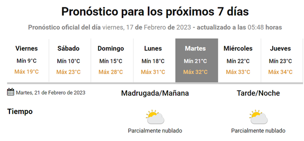 El lunes ya la temperatura máxima superará los 30 grados y el miércoles será el día más caluroso de la semana, con una mínima que será superior a la más alta de este viernes.