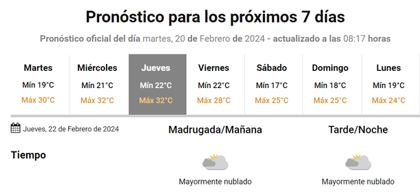 El calor fuerte comenzará este martes 20 de febrero de 2024 en Buenos Aires y los días con temperaturas máximas más altas serán este miércoles y jueves.