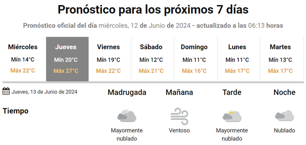 Pero no será el único día con lluvias esta semana, porque el viernes 14 de junio se anuncian lloviznas para toda la jornada, siendo la mañana el momento más complicado de la jornada.