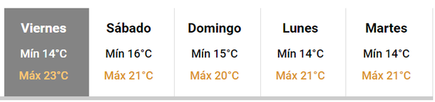 Si bien desde este miércoles las temperaturas comienzan a incrementarse, el día de más "calor" será el viernes 2 de junio, jornada en que la máxima llegará a los 23 grados.