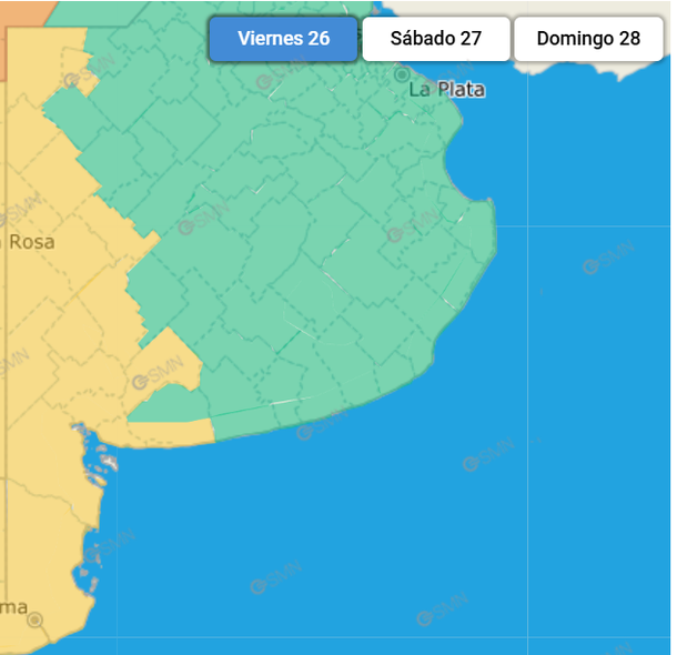 A partir del viernes 26 por la noche, el norte de La Pampa, noroeste de la Provincia de Buenos Aires, oeste de Santa Fe, Córdoba y sur de Santiago del Estero serán afectados por vientos del sector sur con velocidades entre 35 y 55 km/h, y ráfagas que pueden alcanzar localmente los 90 km/h.