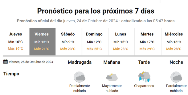 La mala noticia es que se esperan también lluvias para el viernes 25 de octubre, algo que originalmente no estaba previsto por los pronosticadores del tiempo.