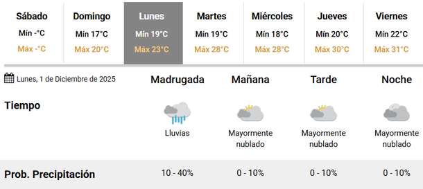 Si bien se había adelantado que el lunes estaría pasado por agua, al igual que este sábado y domingo, lo cierto es que ahora el SMN indica que el arranque de la semana tendrá leves lluvias durante la madrugada, pero las mismas no se extenderán a lo largo del día.