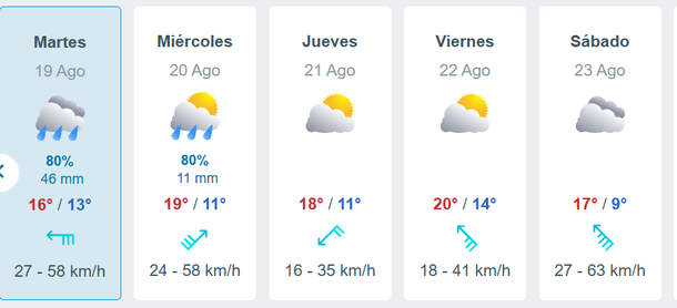 Se anticipa un leve repunte térmico para el fin de semana, con cielo mayormente nublado y temperaturas de entre 7 y 14 grados para el sábado; y de entre 11 y 15 para el domingo.