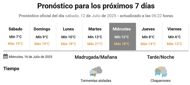 El cielo estará parcialmente nublado durante la tarde, pero las nubles se irán disipando con el transcurrir de las horas, esperándose cielo prácticamente despejado hacia la noche sabatina. Los registros térmicos irán desde los 11° hasta los 19° de máxima.