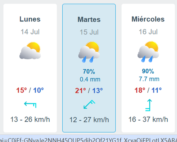 Pero el sitio Meteored, anuncia que las tormentas podrían llegar al AMBA un día antes, con lluvias débiles durante la jornada del martes 15 de julio.