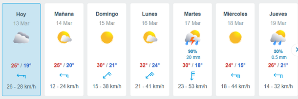En tanto, el sitio Meteored también señaló la presencia de lluvias para el próximo jueves 19 de marzo, remarcando también el pronóstico que tendrá lugar el martes y que ya había sido anunciado por el SMN. De manera que se espera fuerte presencia de tormentas en la próxima semana y una brusca disminución en las temperaturas.