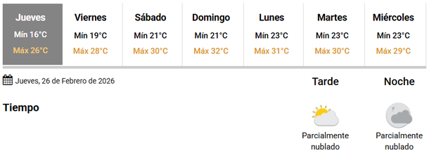 El sábado y el domingo marcarán el retorno de temperaturas más elevadas, aunque dentro de rangos moderados: el sábado la jornada comenzará con cielo parcialmente nublado, incrementándose la nubosidad hacia la tarde. Se prevé una mínima de 19°C y una máxima que alcanzará los 30°C.