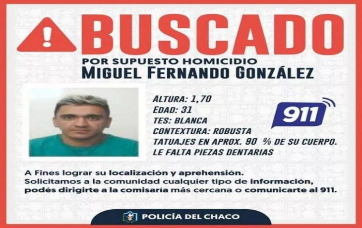 La Fiscalía Penal N°1 a cargo de Ignacio Arana, por medio de la policía local, difundió un pedido a toda la comunidad chaqueña a fin de poder brindar información que pueda dar con el paradero del sospechoso.