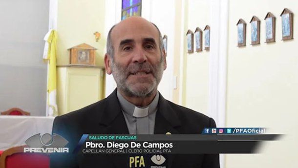 Capellán General de la PFA, De Campos se dedica a recorrer el país supervisando al resto de capellanías policiales y es la figura más preponderante de la fe dentro de esa fuerza de seguridad federal.