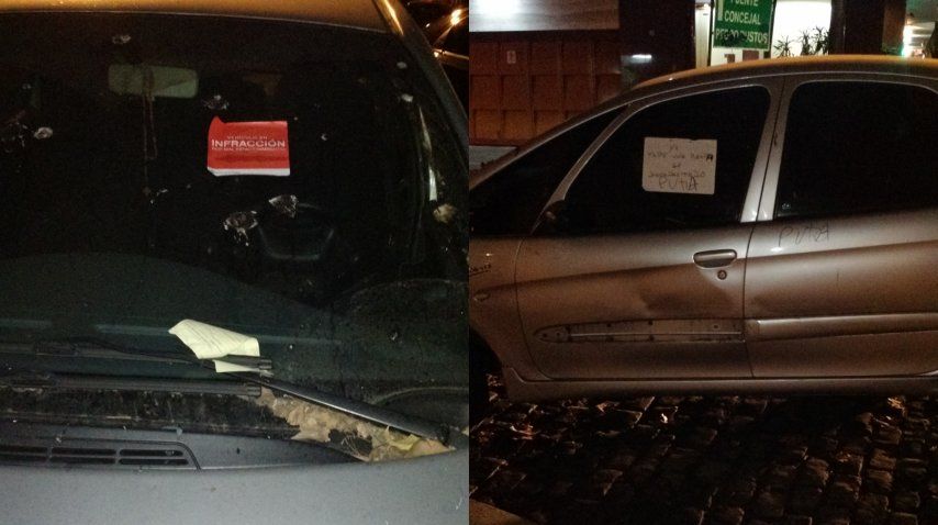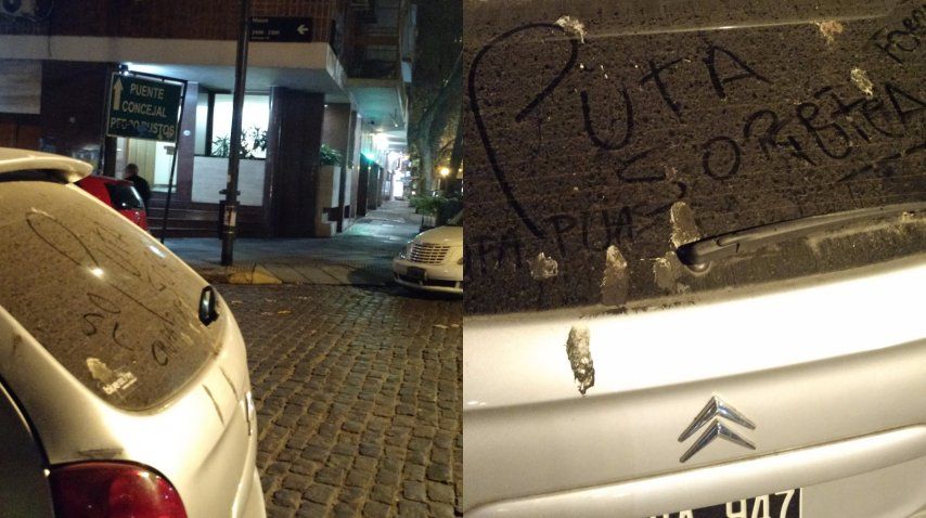 Esta vez, una suerte de justiciero del barrio porteño de Belgrano cubrió este sábado un Citroen gris con mensajes de repudio hacia una mujer que dejó el auto estacionado desde hace varios días en el espacio no permitido, obstaculizando el paso peatonal y cubriendo la entrada y salida de personas con discapacidad. "Puta, sorete", se lee.