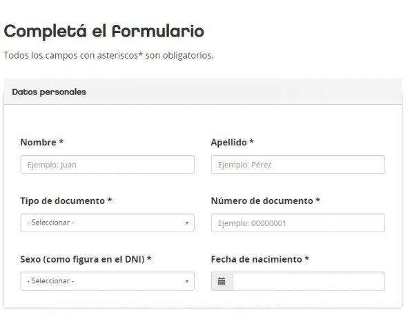 - Ahí se deberá completar un formulario con datos personales (Nombre, apellido, tipo y número de documento, fecha de nacimiento, domicilio – comuna, barrio y código postal – teléfonos de contacto y correo electrónico).