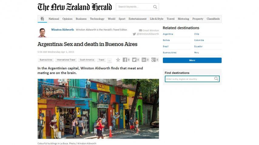 Un diario neozelandés defenestró a Buenos Aires: "Ciudad de sexo y muerte"