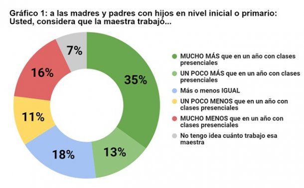 El 66% de los adultos con hijos en Primaria o Inicial entiende que los maestros trabajaron durante la virtualidad igual o más que en las clases presenciales.