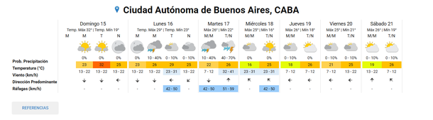De hecho, para el miércoles se pronostica una mínima que rondará los 16 grados y una temperatura máxima que podría ubicarse en 25.