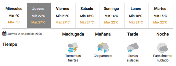 El fenómeno, que tuvo sus primeros indicios este miércoles, cobrará fuerza en las próximas horas. Los pronósticos indican que la madrugada del 2 de abril será el periodo más crítico, con el desarrollo de tormentas fuertes en la región. Hacia la mañana del jueves, el panorama se transformará en chaparrones persistentes, mientras que para la tarde se espera una mejora relativa con lluvias aisladas y una baja probabilidad de precipitaciones.