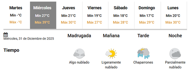 El termómetro de este miércoles oscilará entre los 27° y 39°, con cielo ligeramente nublado y viento soplando del Oeste.