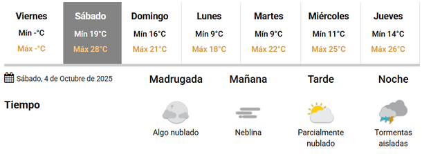 Durante el día, el cielo permanecerá de algo a parcialmente nublado, pudiendo presentarse algunas neblinas durante la mañana. En tanto, el termómetro oscilará entre los 19 y 28 grados, augurando una jornada calurosa, que finalizará con precipitaciones.