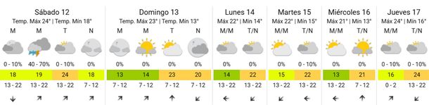 De acuerdo al pronóstico extendido, hacia el próximo fin de semana mejorarán sensiblemente las condiciones meteorológicas, con cielo despejado y temperaturas en leve descenso, pero con máximas que no bajarán de los 20°.