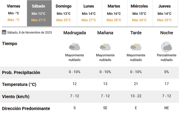 La temperatura más alta de la semana se la llevará el martes, cuando se registren 28 grados, lo que podría alcanzar los 30 sin problemas, teniendo en cuenta la sensación térmica, que siempre se ubica por encima del dato oficial.
