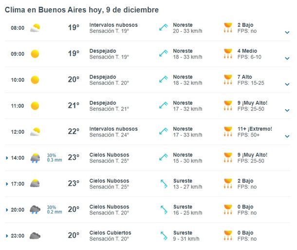Clima en Buenos Aires: el pronóstico del tiempo para el sábado 9 de diciembre