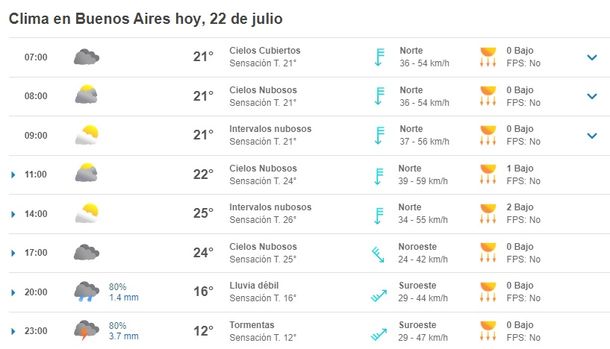 Clima en Buenos Aires: pronóstico del tiempo para hoy sábado 22 de julio