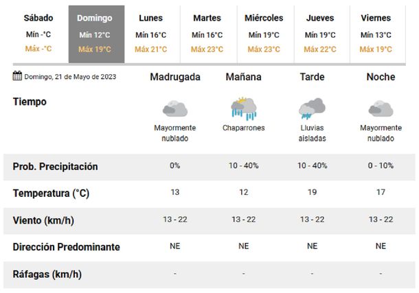 En efecto, durante la mañana se pronostican algunos chaparrones y por la tarde probabilidad de lluvias aisladas en la zona más poblada del país. Las temperaturas se ubicarán entre los 12° de mínima y los 19° de máxima.
