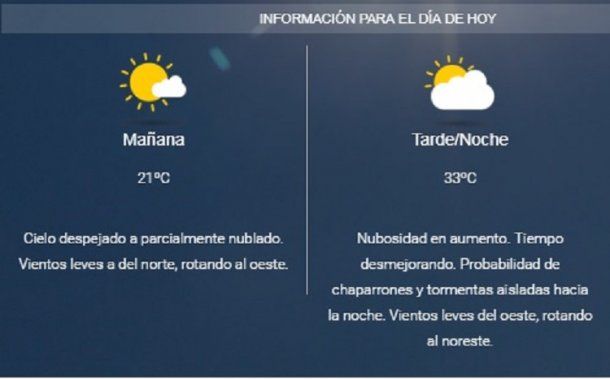 Según el organismo, la temperatura estaría entre los 21° y los 33°.