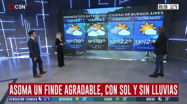 El Servicio Meteorológico Nacional (SMN) anticipa para este jueves en la Ciudad de Buenos Aires y el Conurbano el regreso del sol luego de un miércoles inestable, con un leve descenso de la temperatura y algunas ráfagas de viento.