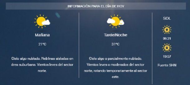 Según el organismo se espera una temperatura que estaría entre los 21° y los 31°.
