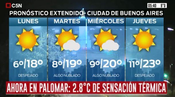 El organismo prevé una jornada con cielo despejado, vientos del sector sur rotando al noreste y una temperatura que estará entre los 6 grados de mínima y los 18 de máxima.