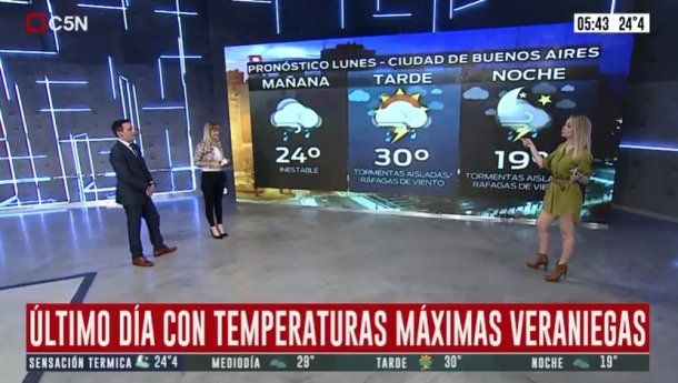 El Servicio Meteorológico Nacional (SMN) anticipa para este lunes en la Ciudad de Buenos Aires y el Conurbano la última jornada con altas temperaturas de esta seguidilla y, por consiguiente, tormentas aisladas y ráfagas de viento de variada intensidad durante todo el día.